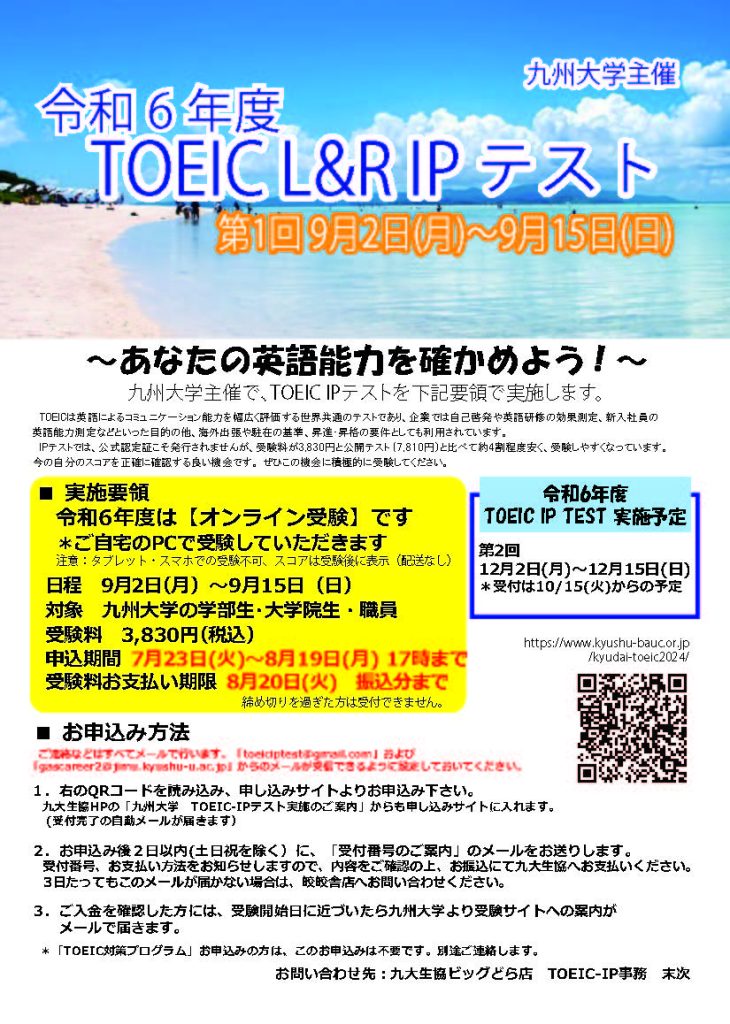 The TOEIC-IP test (online format) is organized by Kyushu University.